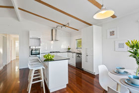 The new modern kitchen is versatile and has ample cupboard and bench space, stainless steel appliances and a brilliant island bench complete with breakfast bar.